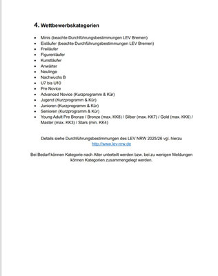 Bei Wettkämpfen zeigen Eiskunstläufer in wunderschönen Kürkleidern, was sie im Training gelernt haben in einer Kür zu passender Musik. Wir ermutigen alle Mitglieder oft an Wettkämpfen teilzunehmen und mit den anderen Mitgliedern eine spannende Zeit und Erfolge zu erleben. Unser eigener Wettkampf ist der Christmas Cup.